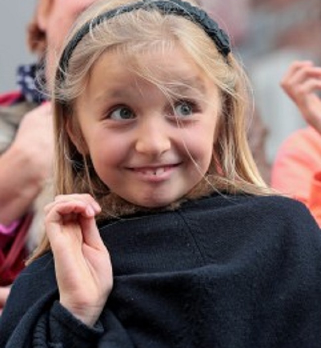 She is an active girl and the princess t-shirt suggests she is quite assertive. Although she is not exactly in the official titles, Mia is a great granddaughter of Queen of England. She is seventeenth in line for succession.