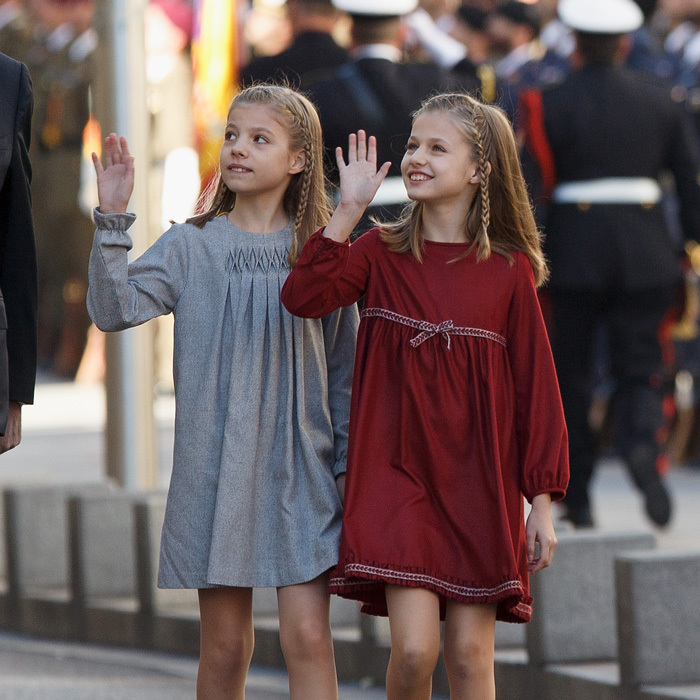 The two sisters show so much sibling love in this photo. Princess Leonor is older, which makes her second in the line of succession. When they pose together their eye color reveals their beautiful eyes and how excited they are about each other.