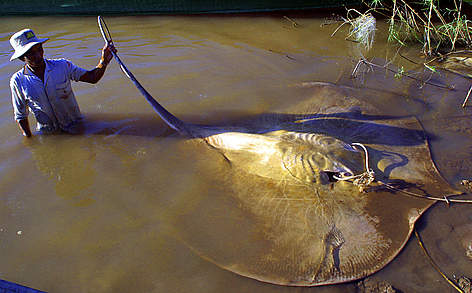Unfortunately, these majestic creatures are endangered and that means we’ll likely be seeing them less and less as time goes on. Giant Freshwater Stingrays look like massive creatures ripped right out of the latest ‘Alien’ movie. These stingrays can get up to 16.5 feet long while weighing in at over 1,300 lbs.