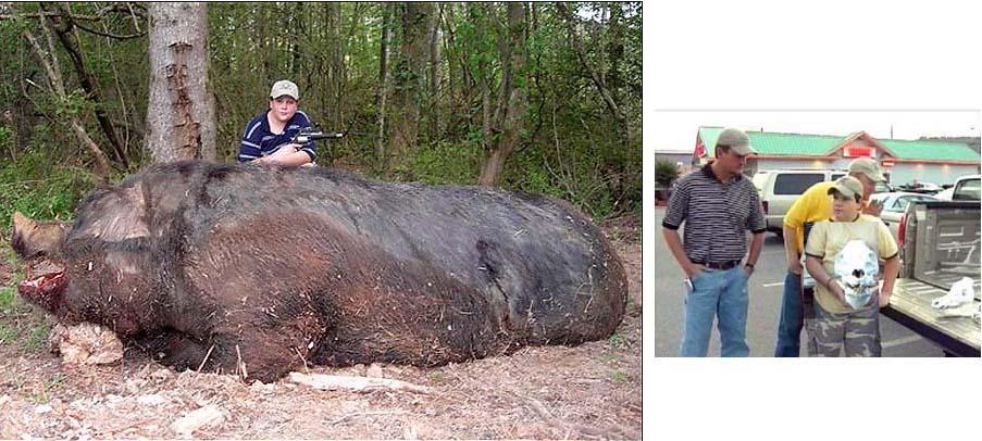Allegedly, this massive hog threatened to attack 11-year-old child Jamison Stone and his father while they were out hunting. The Stone’s managed to kill the creature with a gun before posing with this picture. Allegedly, the hog was nine-feet long and weighed in at over 1,000 lbs. While the veracity of this specific pig is in question, scientists have unearthed similarly sized hog fossils.