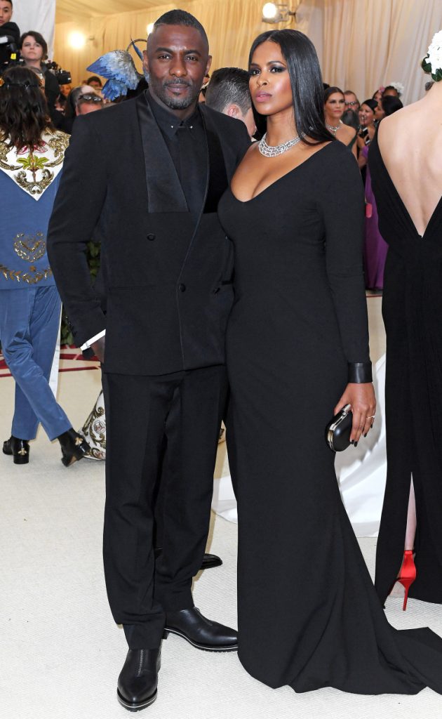 Idris Elba and Sabina Dhowre are a very stylish couple. In this year’s Met Gala they chose to coordinate their outfits. Idris dressed in a deconstructed black tuxedo, and Sabrina wore a beautiful black long-sleeve gown. Givenchy Creative Director Clare Waight Kellera dressed them.