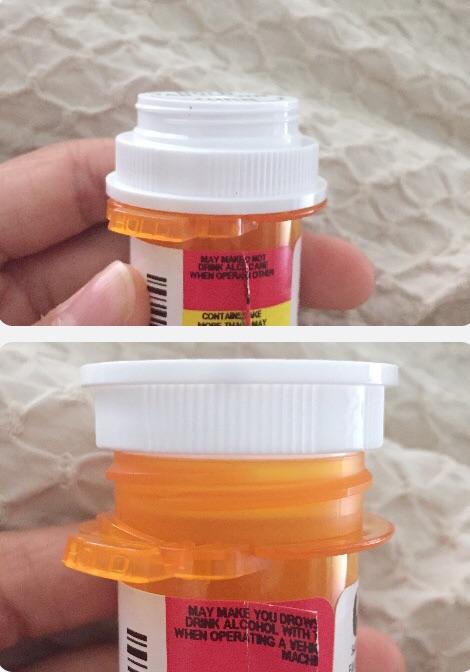2. Most prescription bottle caps can be flipped upside down and screwed on to make them not childproof (see image for example)