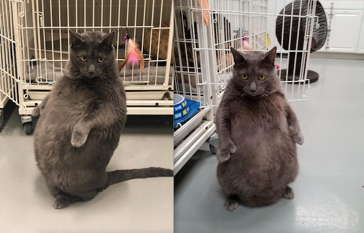 For starters, Bruno weighs 25 pounds. He loves standing on his hind legs while eating and being cute. But this unique little kitty found himself homeless after his owners gave him up for adoption. But it all worked out well, you can say that’s why Bruno is now famous on the internet. Being given up for adoption was a blessing in disguise for this adorable kitty. At the Wright Way Rescue animal shelter in Morton, Illinois, Bruno became famous and got a new home.