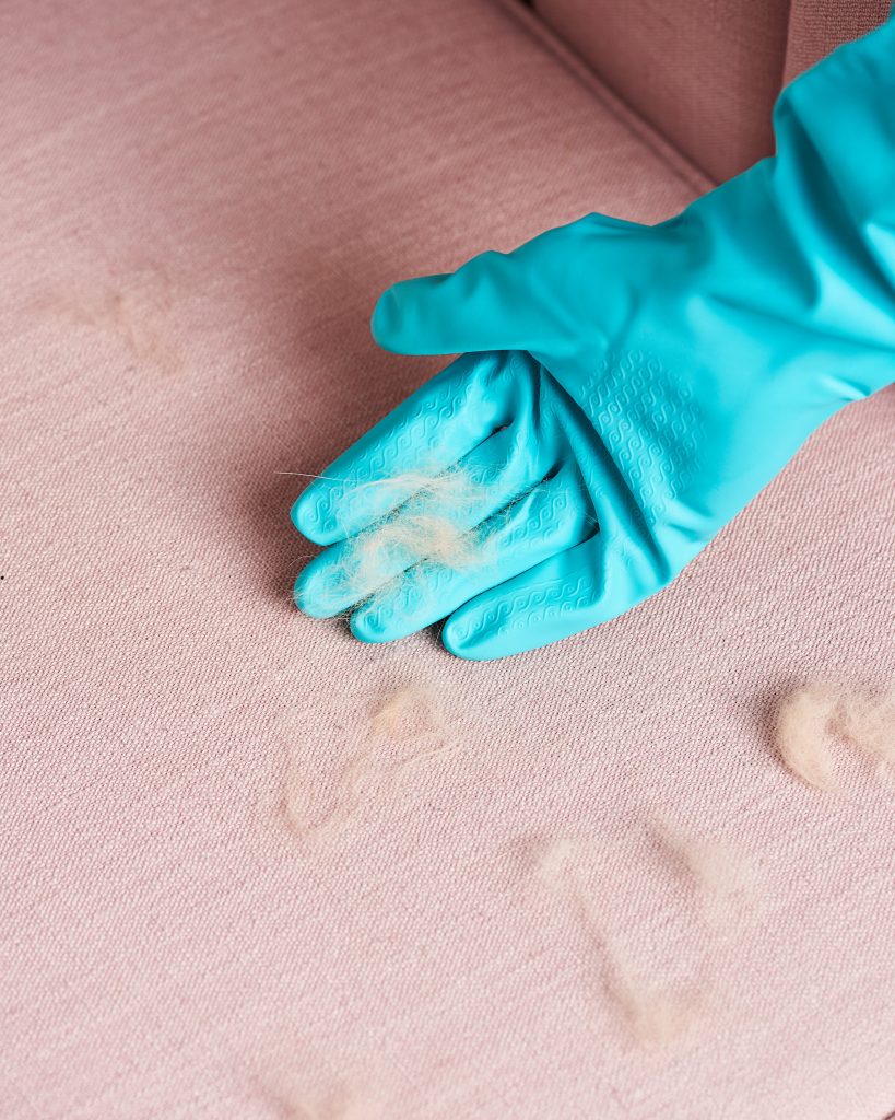 Dog fur has a bad habit of getting absolutely everywhere. Even worse, it can be hard to clean up the fur due to how wispy it is! To get all of that meddlesome dog fur on the first swipe, consider wearing rubber gloves throughout the process. The fur will stick to your gloves, thus allowing you a quick and convenient cleaning session!