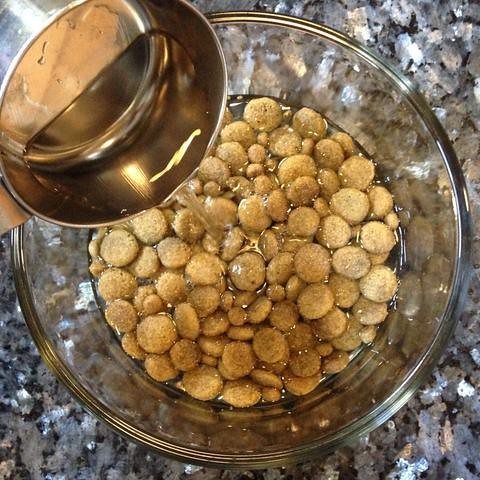 We mentioned how important it is to keep dog food sealed tight to prevent spoilage, but did you know there are more food hacks of note? Dry dog food can be tough to eat for dogs that struggle to chew. You can make your pet’s dog food easy to consume by simply adding a bit of hot water to the bowl. Mix the contents around until the food has softened slightly before feeding your pet the mixture.