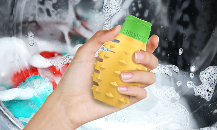 It’s a sphere (kind of looks like a pineapple to me), that you throw in your wash to replace detergent. Laundry Masher contains specially-made nano silver infused ceramic beads in the center of the sphere. These ceramic beads are engineered to react with the water and deep clean your clothes.