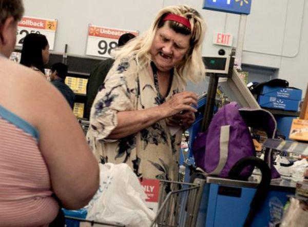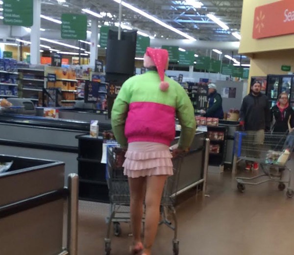 We thought that everyone was joking about storming Area 51. Guess not. We have to assume that this giant bubble-gum looking person is actually an escapee from the mysterious government base. After all, who would willingly go shopping at a superstore while dressed like this? Actually, looking at the other pictures on this list, we can totally believe that this is just a regular shopper who loves superstores almost as much as dressing up like chewed gum.