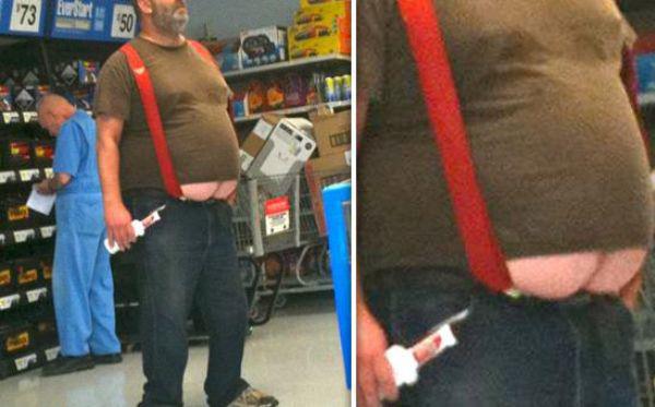 If superstores wanted to get in on the suspenders market, this picture could be the perfect viral marketing promo for them. After all, those suspenders must have been tested by God himself in order to do what they are doing in this picture. Seriously, these suspenders are amazing, unless we’re really just looking at a naked guy underneath that big guy’s shirt.