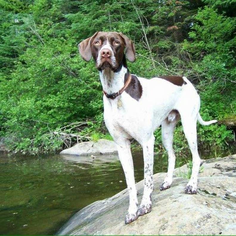In both pictures, Ruger is wearing a collar and leash. Both of the collar and leash sets in the pictures match quite well, which helps to make the pictures look more similar and establish continuity. Dylan Bliss is holding onto the leash this time.