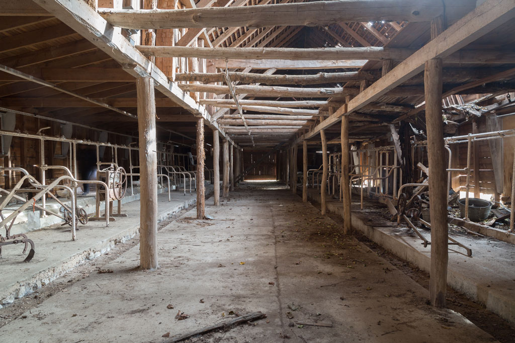 The Victorian home was once made impressive by its appeal but now is decayed by neglect. Here, we see the main farmhouse, which was built in 1860. The roof has sagged, and one of the columns has fallen.