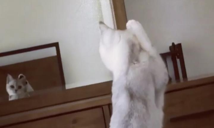 Mimo has become an internet sensation. Internet users have praised her for being as smart as she is adorable. Others think that she was confused because she probably expected to look her human. Cats are among the few animals that can pass a mirror test.