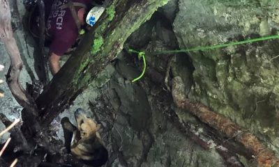 While riding on a North Carolina road, a crew of mountain bikers discovered a dog stuck in a sinkhole 30 feet down. But how did they...