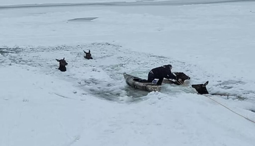 Christmas Eve turned into an Elk-Rescue for Hours on a Frozen River