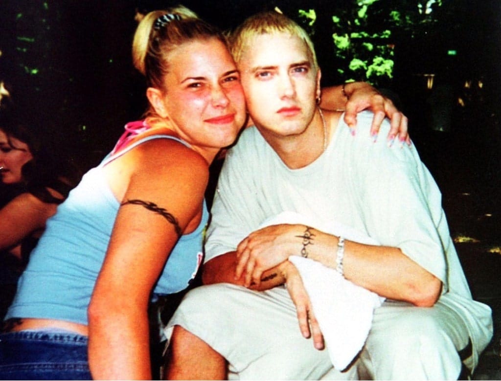 Eminem and Kim Scott connected when in high school. Already dating, Kim and her sister came from a home on the rocks, eventually leaving as minors. Eminem convinced his own mother to let them crash at his place until something else could be worked out. No surprise, the relationships went further.