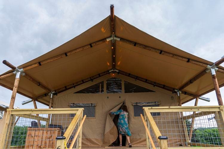 This time, during their long weekend of peace, love, and nostalgia, they stayed in a “Luxury 2 Bedroom Safari Tent” with a front deck and bathroom. When it rained, they stayed dry in the museum.