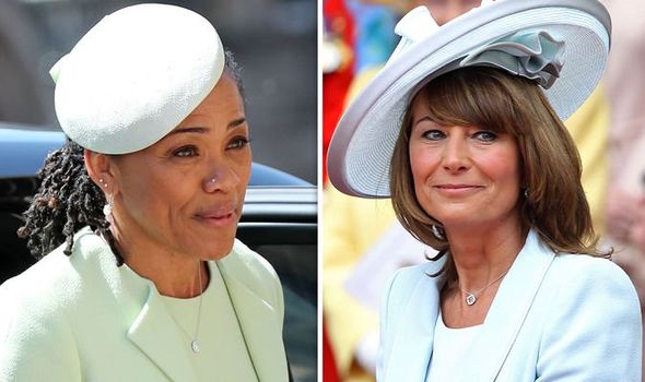 Both mothers were subtle and muted dresses and outfits to focus the attention on their daughters being married. Carole Middleton was in a pale blue matching outfit designed by Catherine Walker. It matched her complexion perfectly as she seemed more smiles than Kate was. Doria Ragland, Meghan’s mother, showed up in an Oscar de la Rente outfit, attending solo after flying in from Los Angeles to attend. She too beamed for her daughter and the big day.