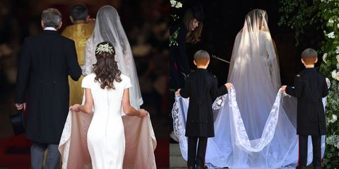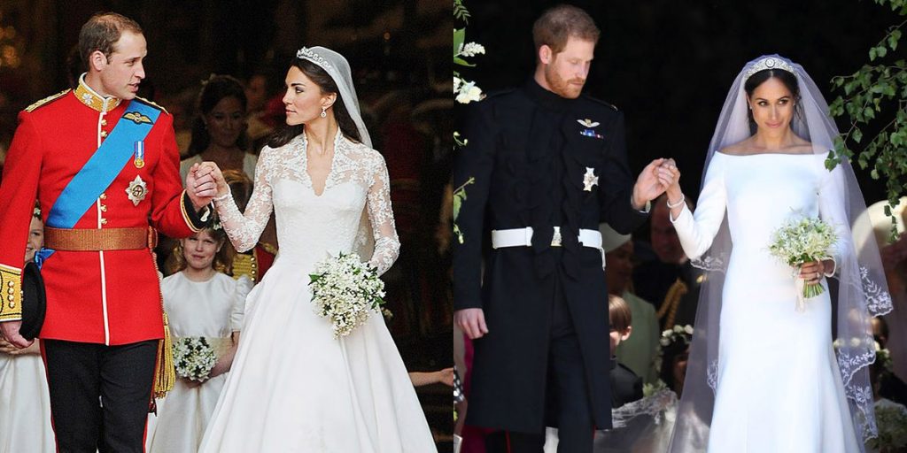 Kate Middleton’s dress included a solid material long train that was reminiscent of that which Princess Diana had during her wedding. Meghan Markle’s train was extensively long as well, but hers was a sheer style that was transparent and see through to some extent, making it unique and different.