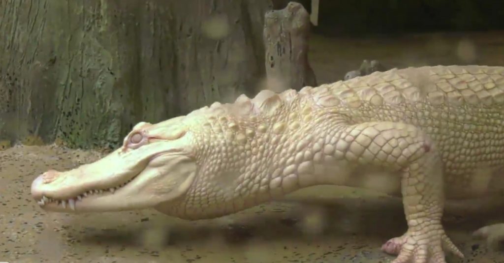Due to her albinism, Snowflake can stand out easily even amongst a crowded congregation of alligators. She possesses noticeably white skin that can be likened very much to the look of ivory and her eyes also have a pinkish hue. Those characteristics are typical of an albino alligator.