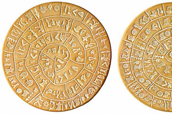 The Phaistos Disc has been surrounded by debate ever since it was first discovered in 1908. The Phaistos Disc is an artifact dating back to some time between 1850 and 1600 BC, which puts it into the time period of the middle to late Minoan Bronze Age. This artifact, a round clay disc, was unearthed on the Greek island of Crete in a Minoan palace called Phaistos. The Phaistos Disc has 241 symbols pressed into it, in a spiral pattern. However, the symbols have not been linked to any written language, and the meaning of the symbols are still unknown.