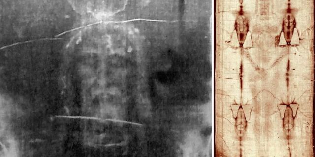 While it seems to simply be a length of cloth, it appears to have the face of a man, and some people believe the Shroud of Turin depicts Jesus and that the shroud is actually his burial shroud. Experts have studied it but not found any definitive answers.