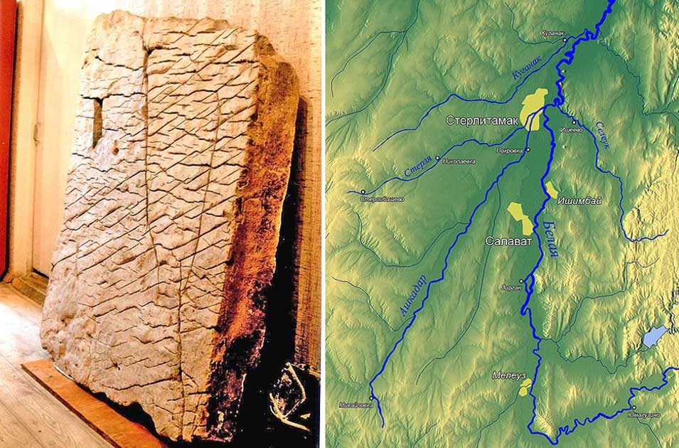 Found in the town of Bashkorostan, Russia, which is located in the Ural Mountains, the Dashka Stone is a large stone tablet, which weighs more than a ton. The persons who unearthed this large stone tablet first believed that the cracks and lines on the tablet were formed naturally; however, they then discovered that the cracks and lines were meaningful: they created a topographical map of the surrounding area. More puzzling, though, was the fact that the perspective of the map shows the region from above. The tablet has been aged between 3,000 and 120 million years old.