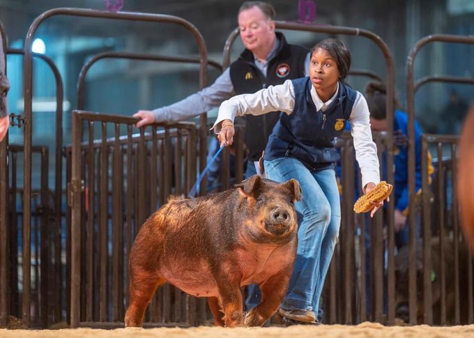 The Youth Expo is the world’s largest junior livestock show. The Youth Expo involves 7,500 4-H and Future Farmers of America (FFA) as well as thirteen thousand head of cattle, sheep, goats, as well as agricultural mechanics projects. Penny and Ms. Gaye won first in their division as well as their class. They also placed third overall in the show’s Purebred Duroc Gilt Division. Penny was placed in the forty-sixth slot in the sale. The top two percent of gilts exhibited are sold to swine breeders across the United States. Ms. Gaye wants to see Penny be bred and have a lot of little prize-winning piglets.