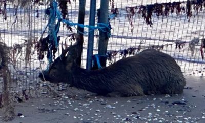 A very tired roe deer was rescued from Cleethorpes beach, according to a wildlife group. Emergency services were called on Monday evening by people worried the...