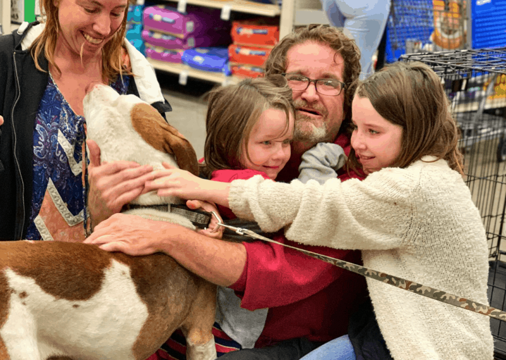 On that special day, a family showed up at the PetSmart that was hosting the event in hopes of adopting a kitten. While they were waiting in line, they happened to notice a dog that was being readied for a walk. The brown-and-white dog looked very familiar to the family, who had lost a similar-looking dog in August.