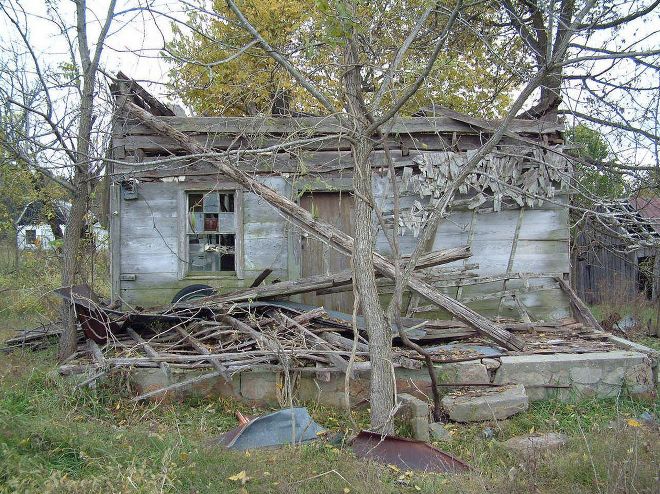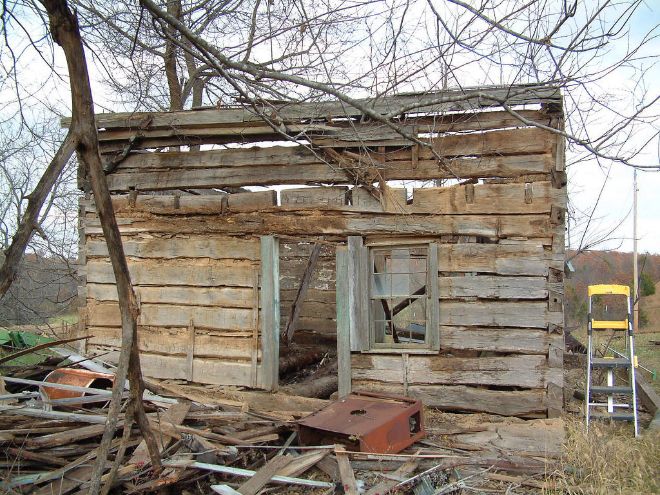 After plunking down a hundred bucks to the owner of the dilapidated mess, Richard was shocked to find the inside of the one-room hut full of dead trees, animal nests, and giant boulders leftover from the old foundation. The so-called “log cabin” was really just a huge mess enclosed in a barely-standing wooden shell.