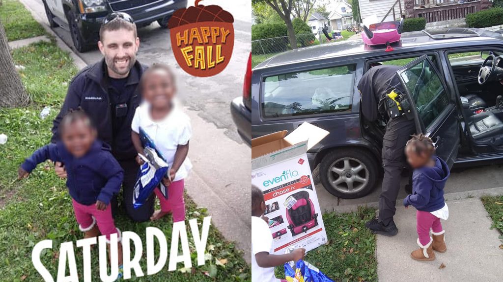 Officer Zimmerman soon made his way to a nearby Walmart, and after learning how much the kids weighed from Jackson, he went ahead and purchased two car seats using money out of his own pocket. He even stuck around to install the car seats himself.
