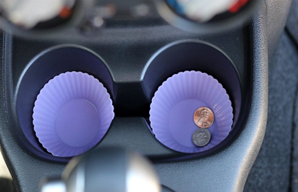 Cup holders always collect so many crumbs and dust and they are notoriously hard to clean. An easy solution is silicone cupcake holders! These cupcake holders fit perfectly into cup holders and they make them so much easier to clean. Remove the cupcake holder and shake out crumbs or bring them inside and wash them in the sink whenever you need. They also add a fun pop of color to your car.