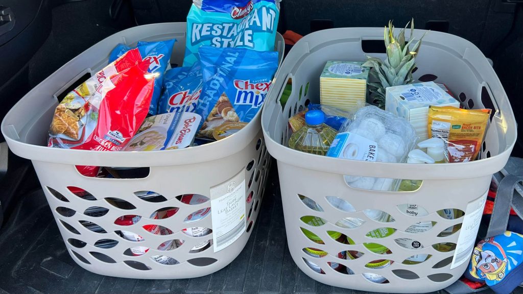 I love to bring all my groceries in on one trip. Even if it means 4 bags in each hand, digging into my flesh. That’s why this is one of my favorite car hacks. Put a classic laundry basket in your car for carrying big loads easily. It can easily hold 4 grocery bags and you don’t have to worry about them ripping. It also is great for clearing out miscellaneous items from the car or for loading groceries from stores that don’t have bags (i.e. Aldi, Costco)