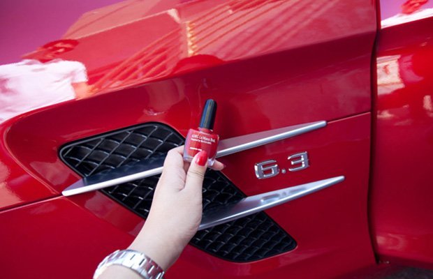 Nail polishes come in an extremely wide variety of colors. Head to your local ultra and find one that matches the color of your vehicle. Then go to the car wash and get your car clean and warm, locate the small scratch and apply the nail polish carefully over it. No expensive paint job is needed, it will look flawless with this simple trick.