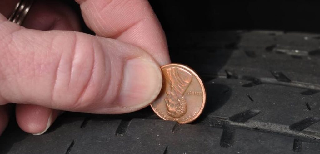 To conduct the penny tire trick, grab a penny and place it head first into the tread grooves of your tire. Take a moment to observe. If you can see the top of Abraham Lincoln’s head when the penny is inserted, it’s a clear indication that your tire treads have worn down significantly. This means your tires have lost their grip and are no longer providing the necessary traction for safe driving.