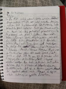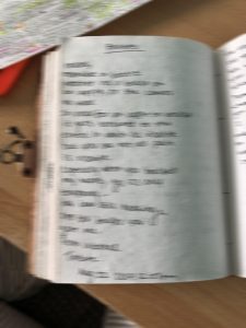 She was up to the current date in readings and quickly flipped the pages to make sure she didn’t miss anything. That’s when she say the sloppier handwriting towards the back of the notebook. The neatness of Steve’s writing seemed to really derail and it looked like he was pressing hard with a pen.