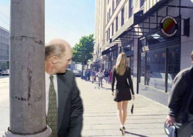 Everbody’s done this – the looking part, I mean. It’s human nature. However, it would be nice to think few have been quite so absorbed in the sight they beheld as the guy in this picture. Imagine him explaining his black eye to his wife.