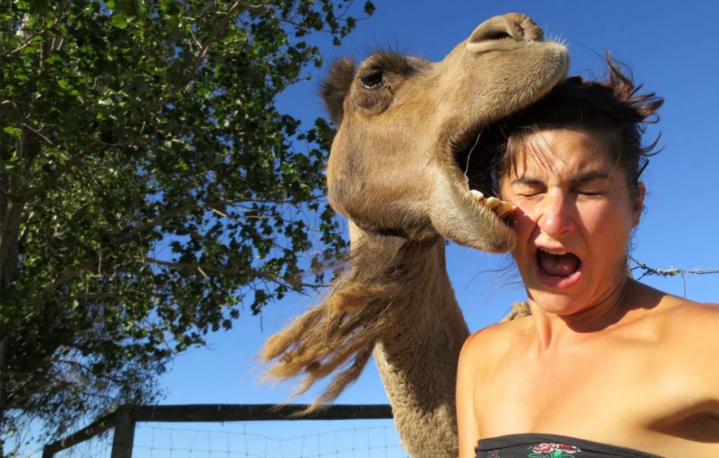 This is no joke. Camels bite and the injuries they cause can be very serious. Considering their height, maybe it’s no surprise that they often target people’s heads. Beware!