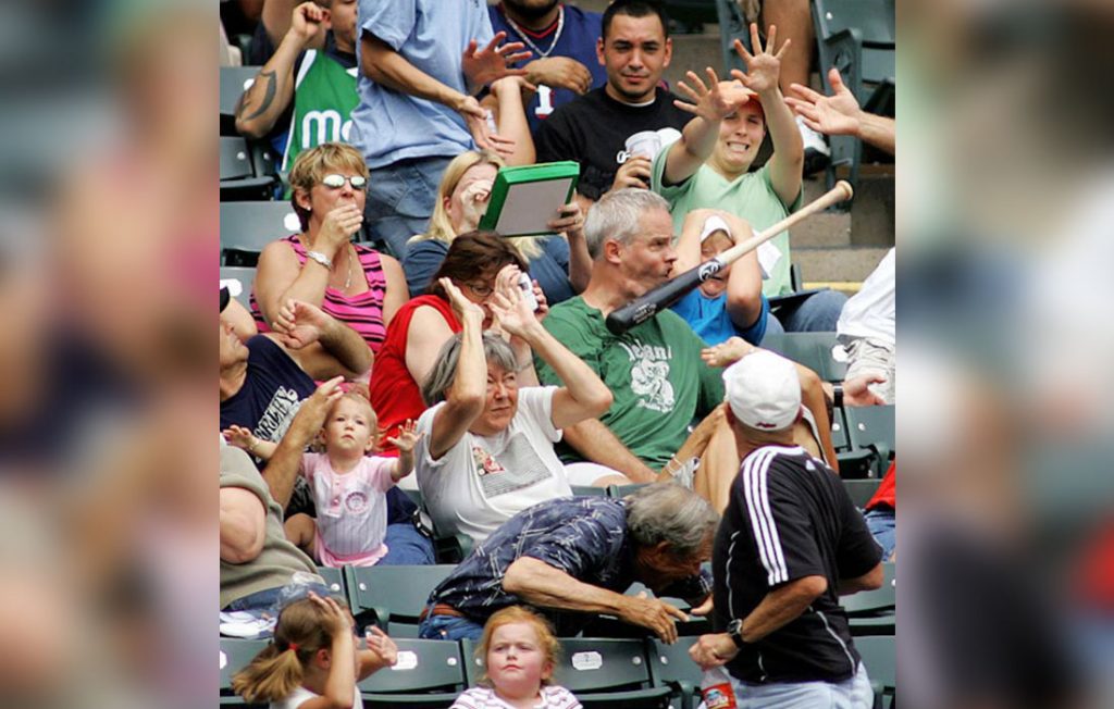 I love how Sunglasses and the kid in the front row don’t even seem to notice the baseball bat flying in their direction.