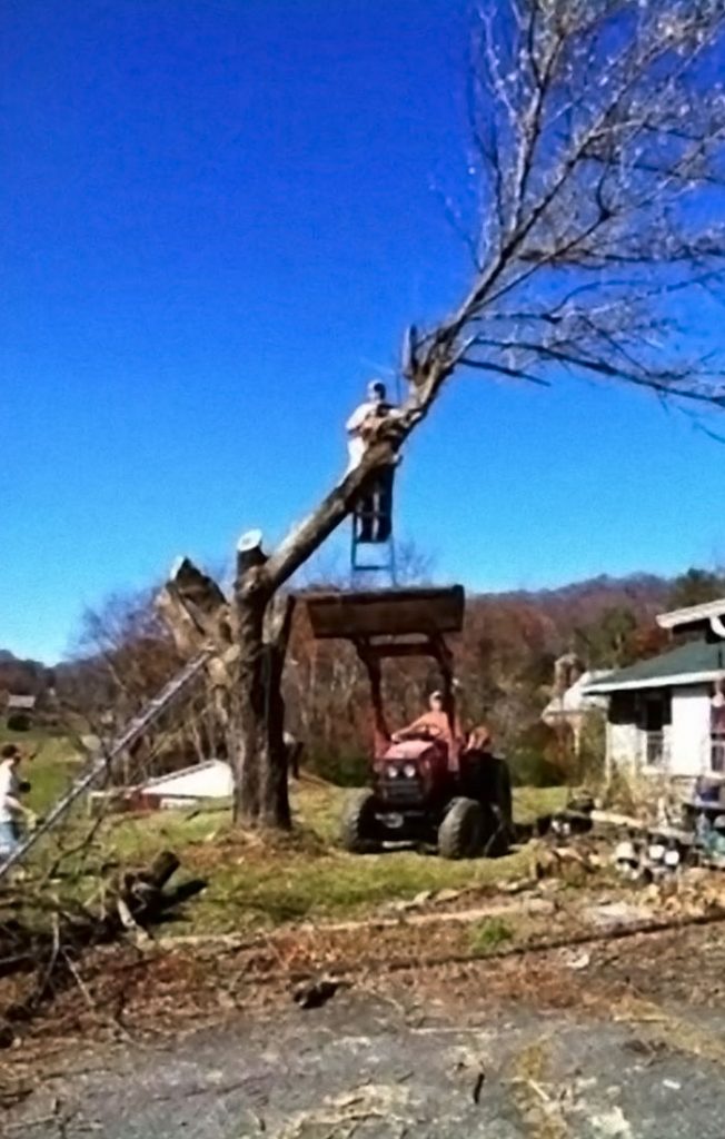 Did this guy doubt his skill with a saw? It’s hard to imagine any other reason for the placement of his ladder.