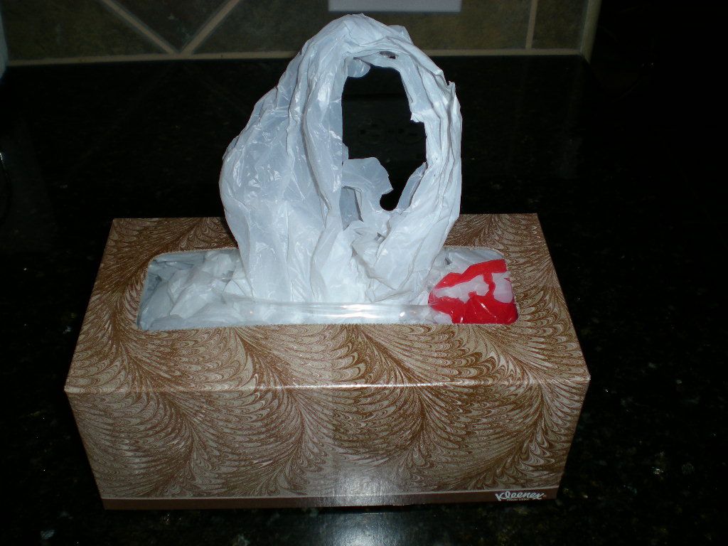 Organize small plastic bags from shopping to re-use as trash bags by re-using an empty tissue box. Once you have depleted the tissues in that pretty, decorative box, simply stuff it full of empty, plastic bags. You will always have them at hand when you need to change the trash bag and your dispenser will match your decor.