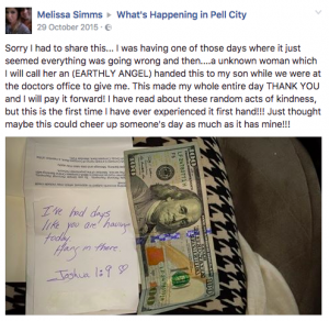 Before using the money to pay the doctor’s appointment, Melissa took a picture of the note and posted on her Facebook.