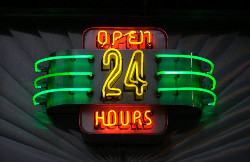 In big cities around the world there are sections and areas that do stay open late into the night, usually for bars and entertainment. However, you can go to just about every town and neighborhood in the U.S. in 2020 and you’re bound to find an all-night fast food joint or gas station open. And we treat Sunday as a regular business day. Other countries actually outlaw being open after hours except around the airports.