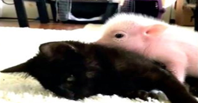 A piglet and a cat might seem like an odd pair, but the kitten named Sriracha and the little pig Batman have proved otherwise. The friendship and interactions of these two close friends are the most heartwarming thing you will ever see. Both animals lived at Rancho Relaxo – a non-profit rescue farm in Woodstown, New Jersey established by Caitlin Cimini. They were more than just friends because Sriracha depended on Batman in a big way.