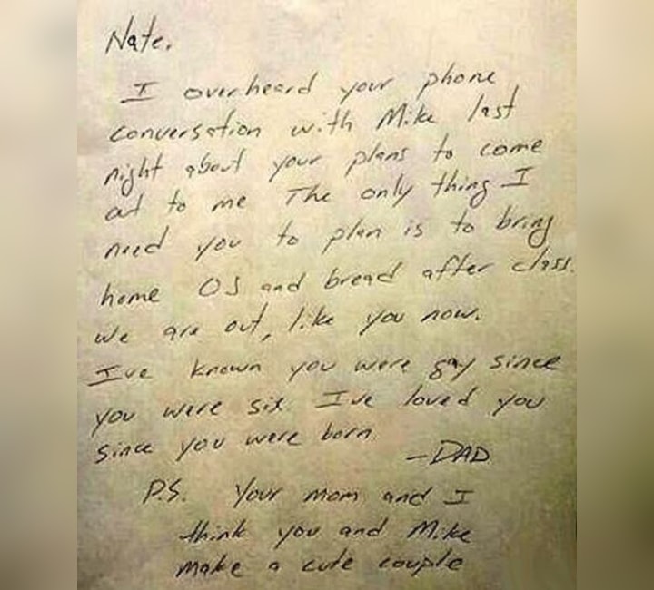 They say a parent’s love surpasses every other love. One instance is a father who overheard his son’s phone conversation about coming out. This amazing dad wrote a modest yet touching letter letting him know he had nothing to fear and he loved him a he is!