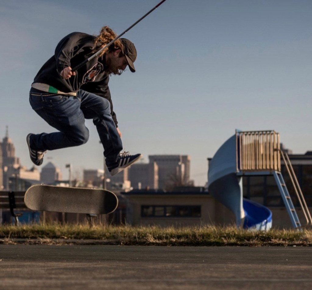 Then he started skateboarding. The skateboard was not foreign to Mancina. He first rode a deck at the beginning of his teenage years, tearing down the street at 13. It was a bit of a shock to him as well. It took some years’ time to get outside, go fishing, walk without help and generally navigate again. Skateboarding was definitely not the first thing Mancina was itching to do, being verifiably blind. However, when he finally just stood on the board again, it felt familiar. In fact, it gave Mancina a sense of individual freedom again, despite his blindness.