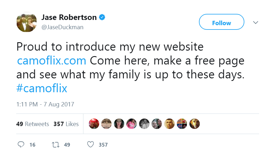 Following the end of the television show, Jase decided to keep busy. Instead of resting and relaxing with the family, Jase launched his own website titled CamoFix. The goal of the website is to create a sense of online family between Jase and his fans. Jase considers CamoFix to be the only way to see what the Robertson family is up to.