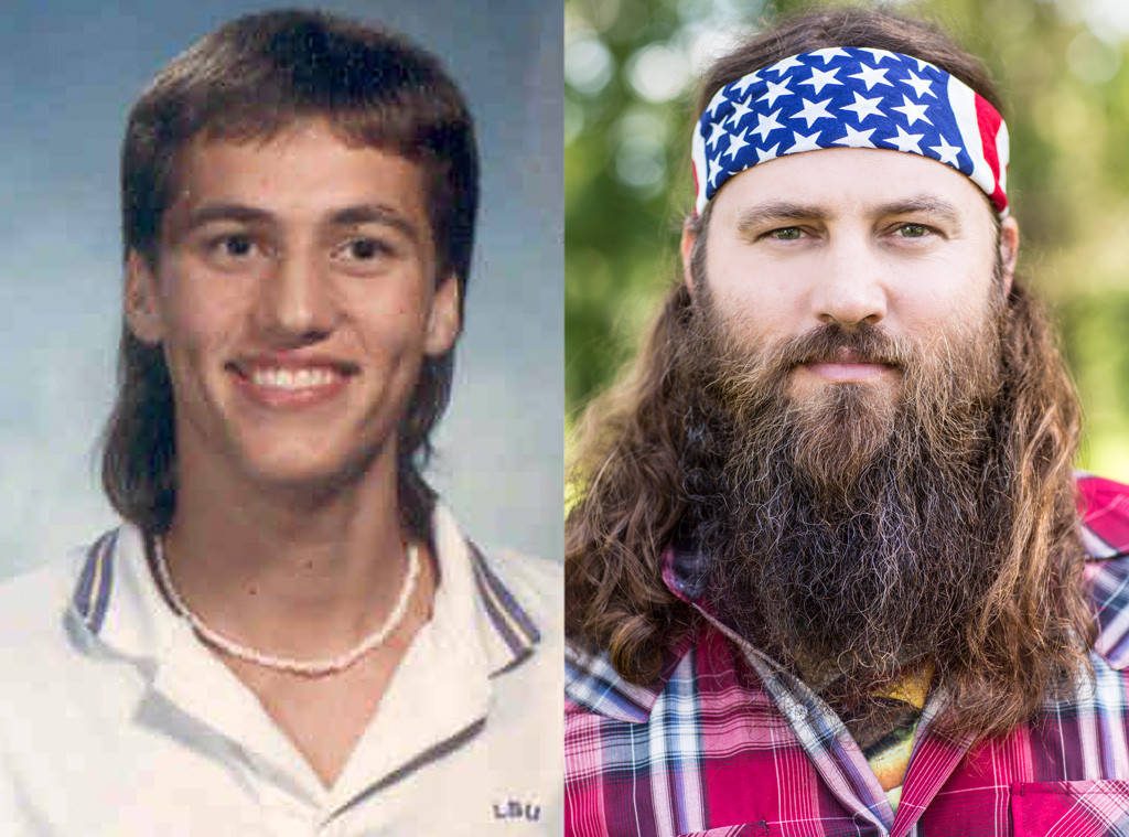 While Jase’s transformation was incredible to watch, it isn’t the only transformation that has rocked the family. In fact, seemingly the entire family has spent time without their infamous beards bedecked upon their faces. This shot shows Willie posing before and after his time on the show. On the left, Willie looks like a mullet-rocking athlete.