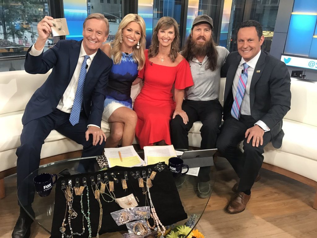 Before Jase could relax with CamoFix, he first had to head to Fox News in order to appear on their daily morning show. While on the program, Jase revealed that he would be shaving his beard off for charity. Here you can see the entire morning crew, along with Missy and Jase, smiling for the camera. Is it just us or does Jase look a little bit hesitant?