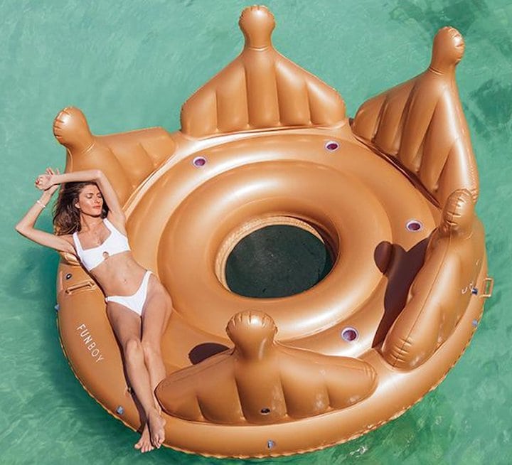 A king or queen deserves to be treated like royalty at all times. This pool float shaped like a crown never lets them forget who is running the show. The exterior is gold with every detail of what you would expect to see in an actual crown present. There are the jewels carved out at near the top of this large headwear along with a donut hole in the middle in case you decide to float and swim for a bit. Of course, there is a lot of space for laying out in the sun while floating along. What else are pool floaties for?